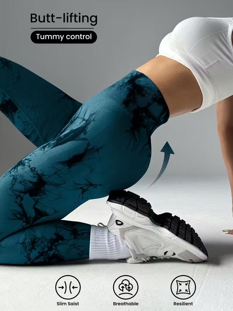 Tie-Dye Seamless Belly Support Nylon Leggings